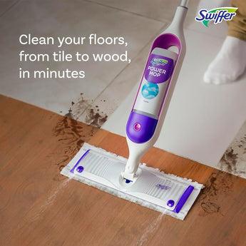 - 1. COMPLETE KIT: This Swiffer PowerMop kit includes a spray mop, 2 Swiffer Power Mop refills, 1 floor cleaner for mopping with a fresh scent, and 2 batteries for a comprehensive floor cleaning solution